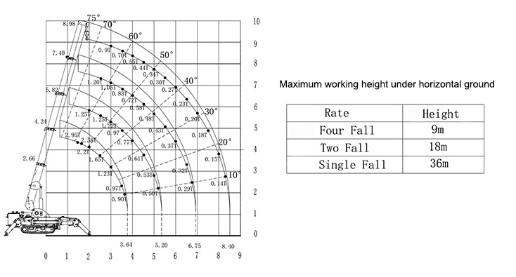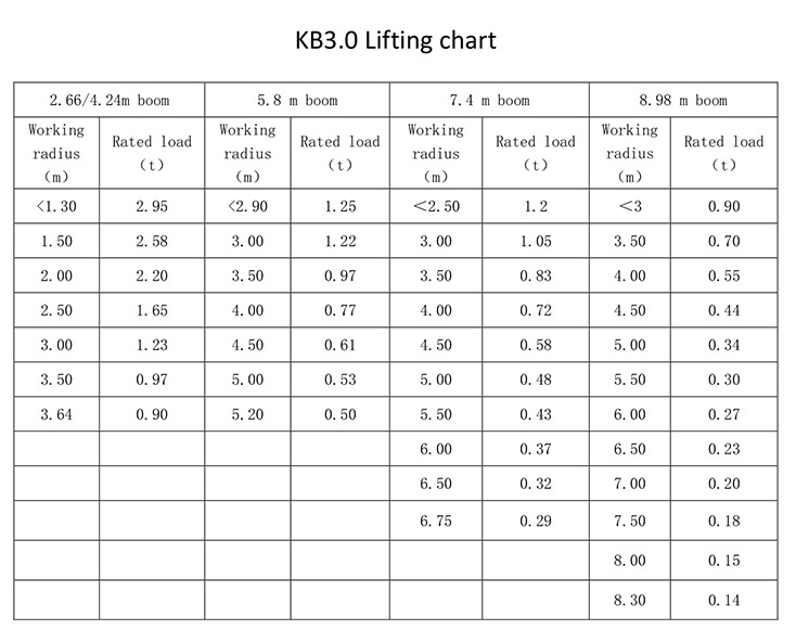 The 8.98m boom provides a maximum lifting height of 9.2m, while the optional Fly Jib provides a greater range of 1500mm.