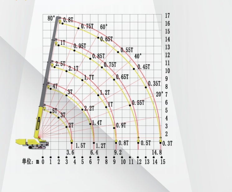 This mini crawler crane can handle a load of 5 tons within a radius of 2 meters.